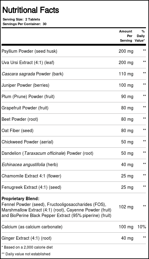 Recomendações de uso: Take 2 tablets three times daily for seven days. After one week, you make take 2 tablets twice daily to maintain result. For best results, drink 8 to10 glasses of water daily and follow the instructions in the enclosed cleansing booklet.
