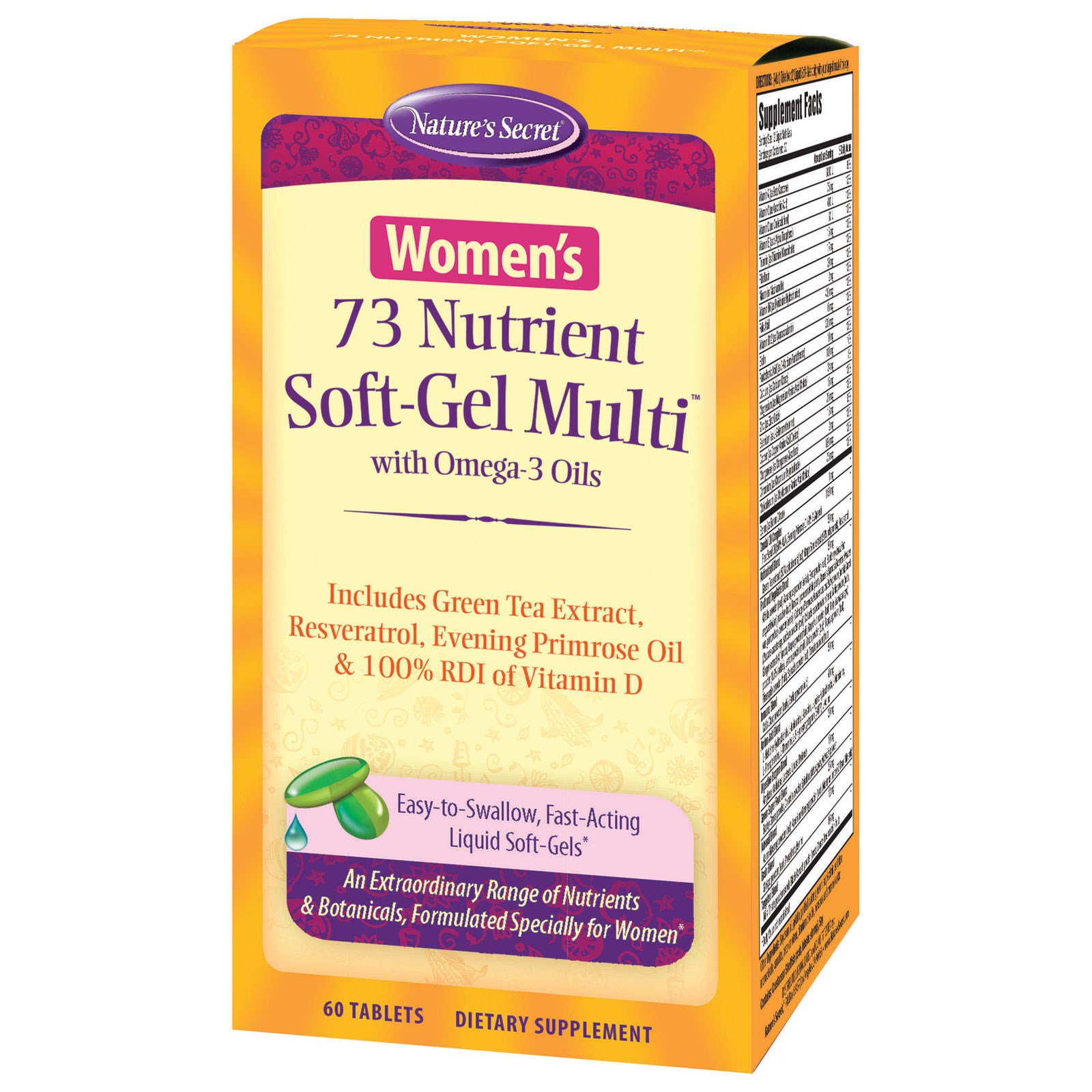 Nature’s Secret Women’s 73 Nutrient Soft-Gel Multi offers much more than an ordinary multivitamin. It is designed to go beyond a strong foundation of essential vitamins and minerals by supplying 10 additional nutrition blends to support optimum wellness for women.