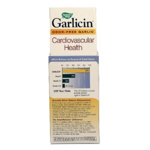 Recomendações de uso: For clinical effectiveness, take 1 tablet twice daily with meals or as recommended by your healthcare professional. For general health maintenance, take 1 tablet daily. Garlicin® should be taken consistently for maximum benefits.