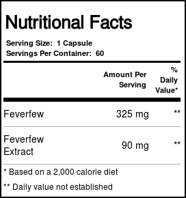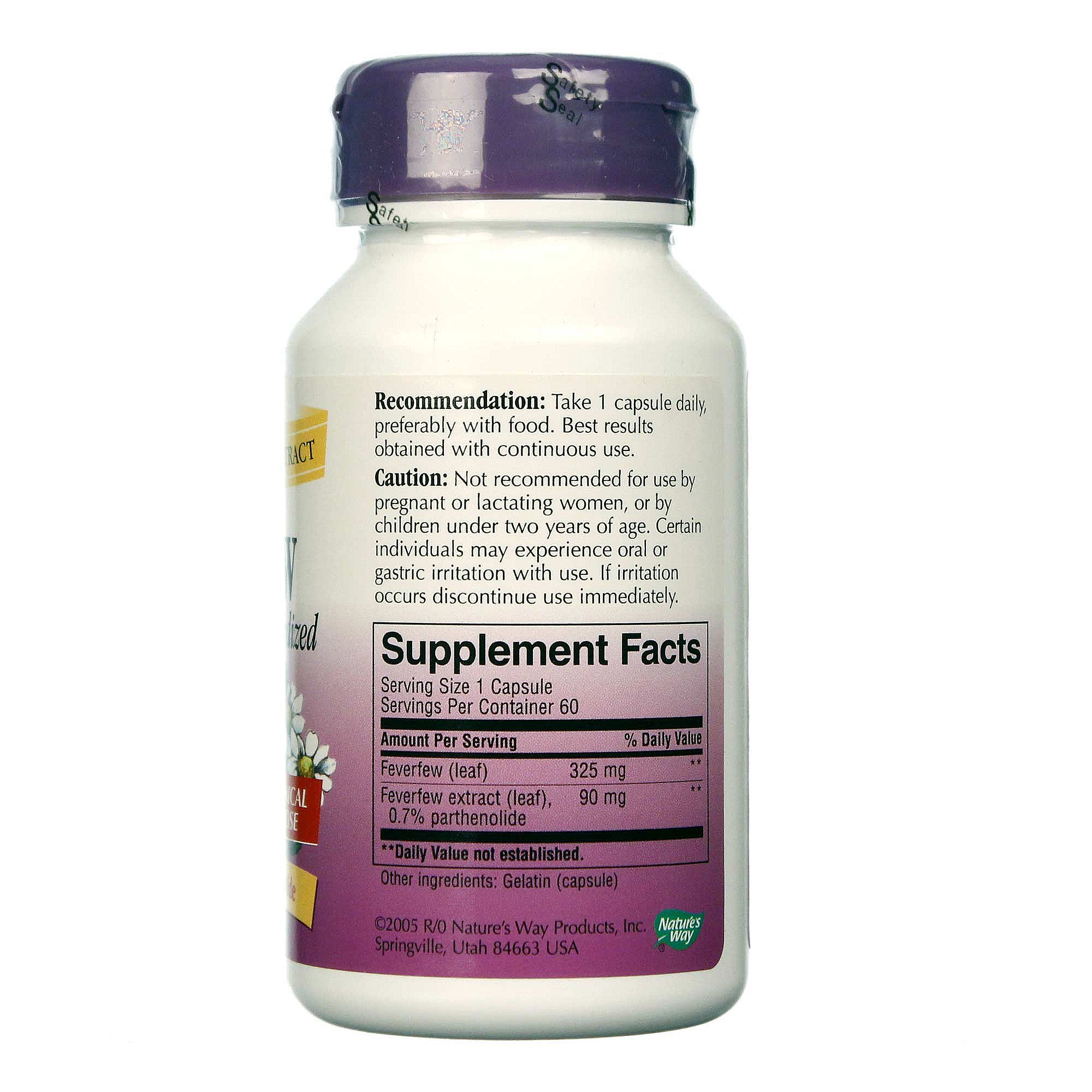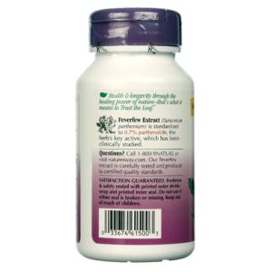 Nature’s Way uses on Feverfew leaves harvested at their peak of potency – (0.2%) Parthenolide.