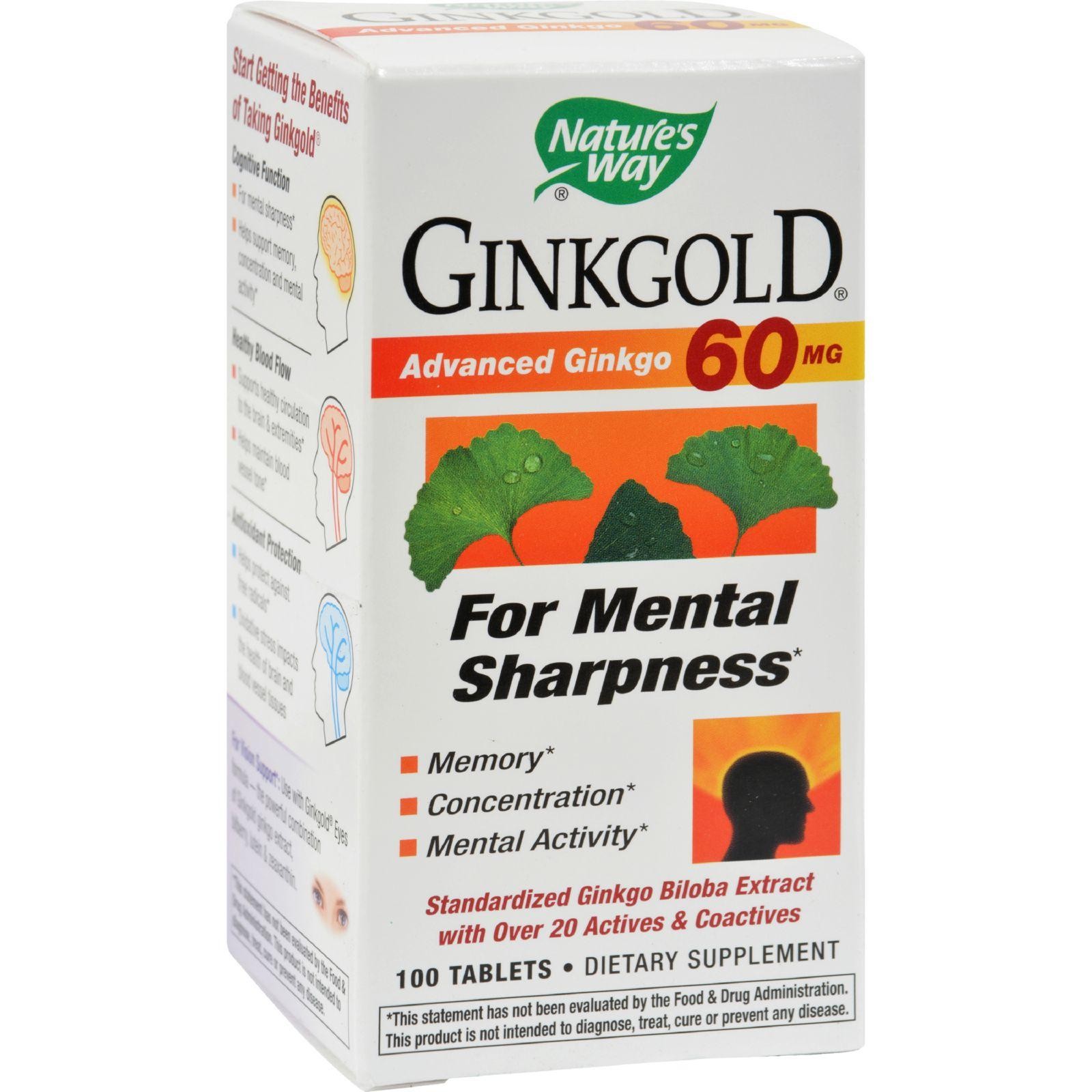 Nature’s Way Ginkgold Description: For improved mental sharpness, memory and concentration. Supports healthy circulation to the brain and the body’s extremities. Maintain healthy blood vessel tone and reduce viscosity. Provides antioxidant protection against free radicals. Disclaimer These statements have not been evaluated by the FDA. These products are not intended to diagnose, treat, cure, or prevent any disease.