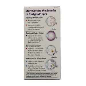 Antioxidant Protection: Ginkgold® Eyes protects against free radicals. Oxidative stress can adversely affect the health of the eye and blood vessel tissues.