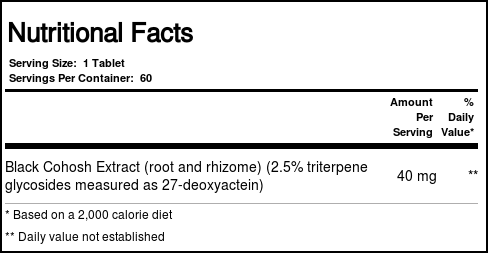 Nature’s Way Preto Cohosh padronizados 60 Tabletes