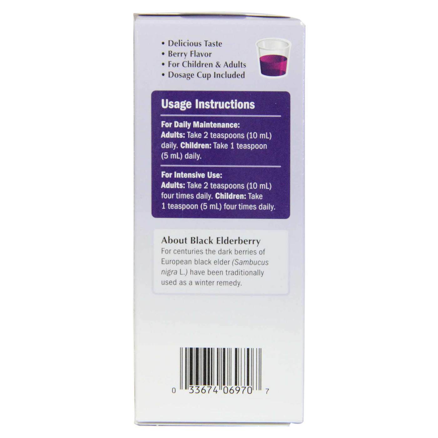 This formula is a great tasting natural remedy for children and adults. It combines standardized, Bio-Certified black elderberry extract and natural raspberry flavor in a base of fructose, purified water, vegetable-source glycerin and citric acid.