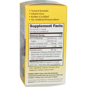 Recomendações de uso: Allow lozenge to dissolve slowly in mouth. For daily maintenance, adults should take 1 lozenge 1-2 times daily. For intensive use, adults should take 2 lozenges twice daily. For children, use Nature’s Way Sambucus For Kids syrup.