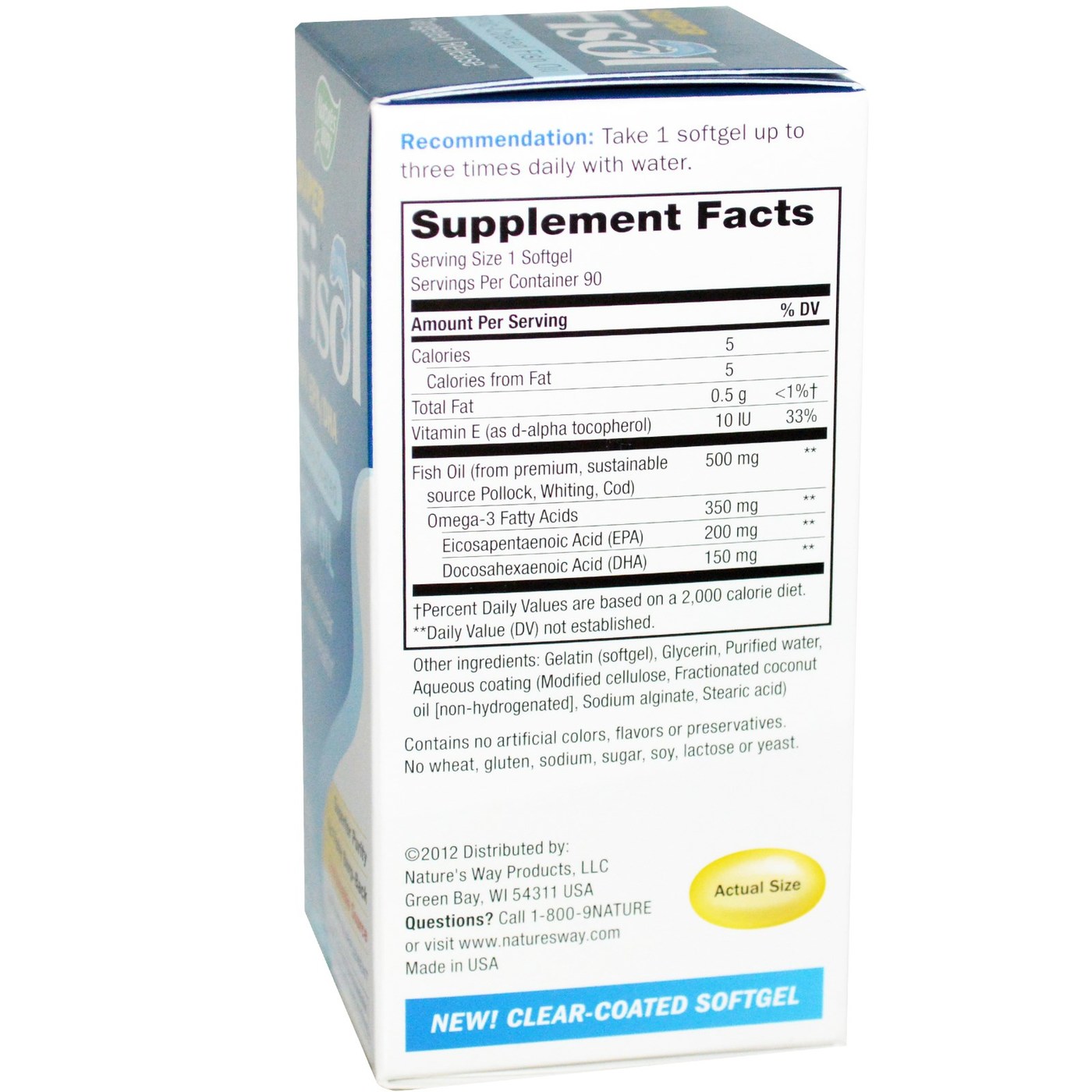 Recomendações de uso: Take 1 softgel up to 3 times daily with water. Because Super Fisol is enteric-coated and better absorbed by the body, its required dose is less than taking non-coated fish oil.
