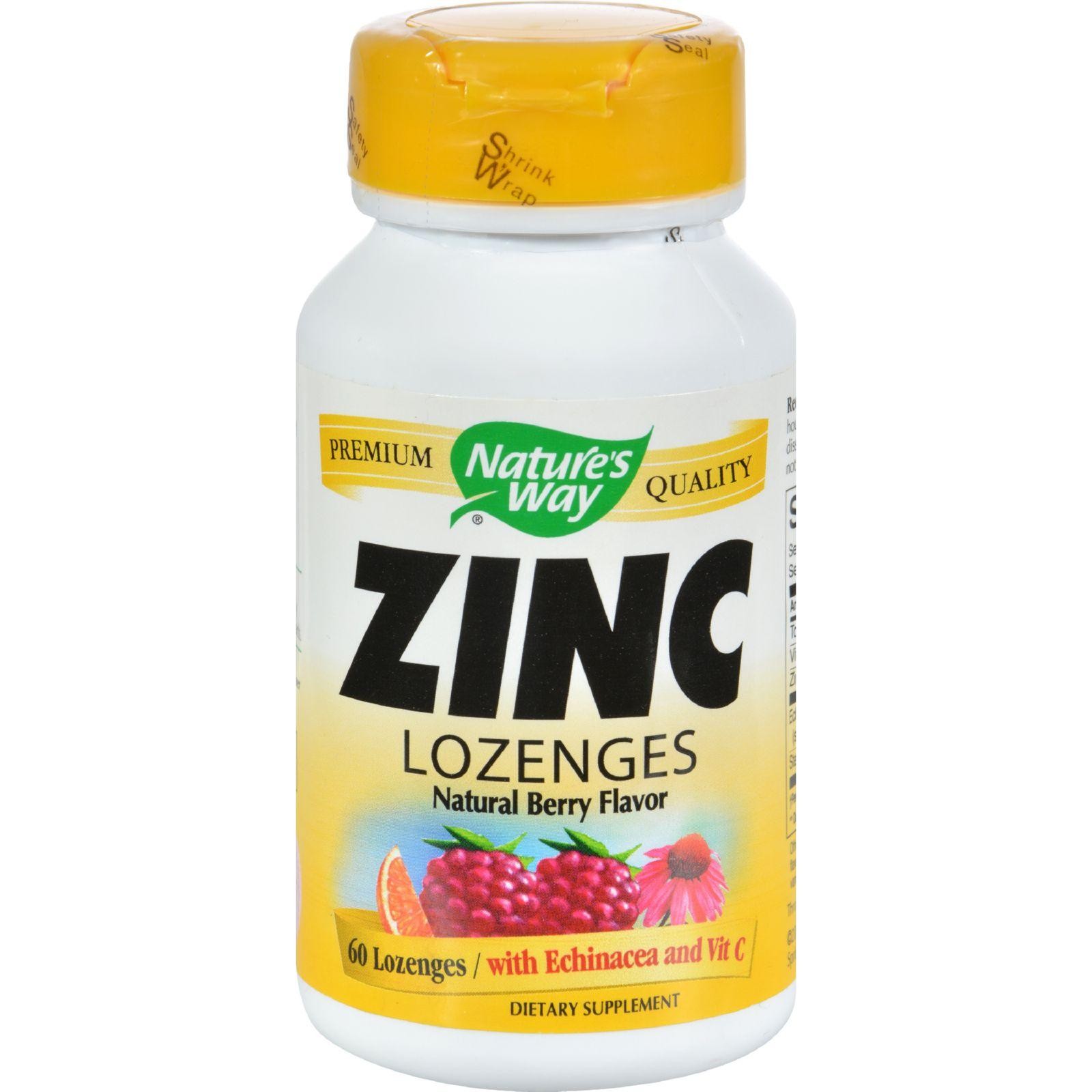 Nature’s Way Zinc Lozenges Natural Berry Description: With Echinacea and Vit C Zinc helps protect against free radicals and is recognized as an important nutritional support during the winter season. Disclaimer These statements have not been evaluated by the FDA. These products are not intended to diagnose, treat, cure, or prevent any disease.