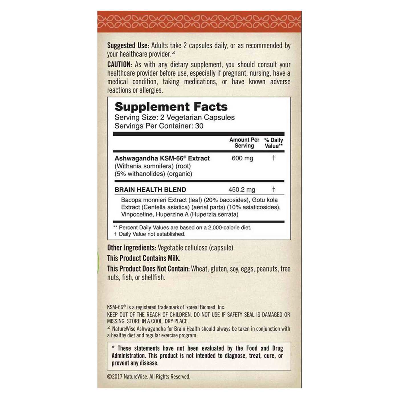 NatureWise Ashwagandha for Brain Health should always be taken in conjunction with a healthy diet and regular exercise program.
