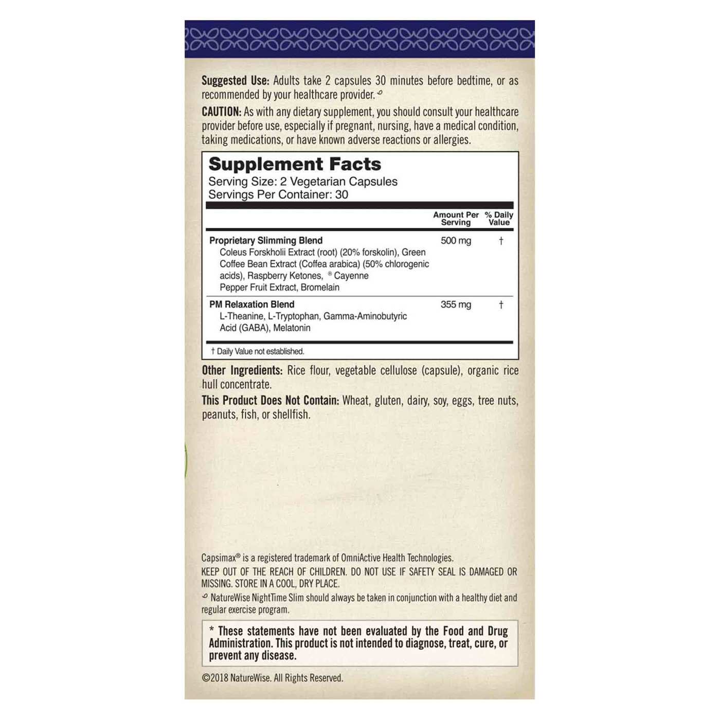 NatureWise NightTime Slim should always be tomarn in conjunction with a healthy diet and regular exercise program.