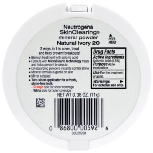 Neutrogena, Pó Mineral Desobstrução da Pele, Marfim Natural 20, 0,38 oz (11 g)