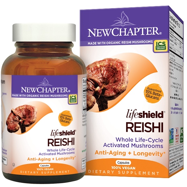 New Chapter, Orgânicos, Escudo da Vida, Reishi, 60 Cápsulas Vegetarianas