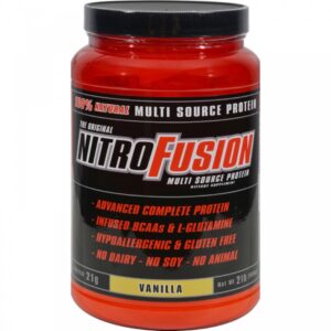 NitroFusion Multi-Source Protein Formula Vanilla Description: 100% Natural Multi Source Protein Advance Complete Protein Infused BCAAs and L-Glutamine Hypoallergenic and Gluten Free No Dairy – No Soy – No Animal Protein 21 g Nitrogen Infused Technology – Complete Plant Sourced Protein – Contains all Essential and Non-Essential Amino Acids – More BCAAs and L-Glutamine than Whey – 21 g of Concentrated Protein in One Heaping 30 g Scoop – 100% Natural, No Artificial Colors or Sweeteners – Lactose Free, Easily Digested, No Stomach Irritation – Hypoallergenic, Vegan Approved, Non-GMO – Cholesterol Free, Low Glycemic Load – Mixed Easily, Uncommonly Great Taste Free Of Gluten, dairy, soy, animal ingredients, lactose, artificial colors, sweeteners and GMO. Disclaimer These statements have not been evaluated by the FDA. These products are not intended to diagnose, treat, cure, or prevent any disease.