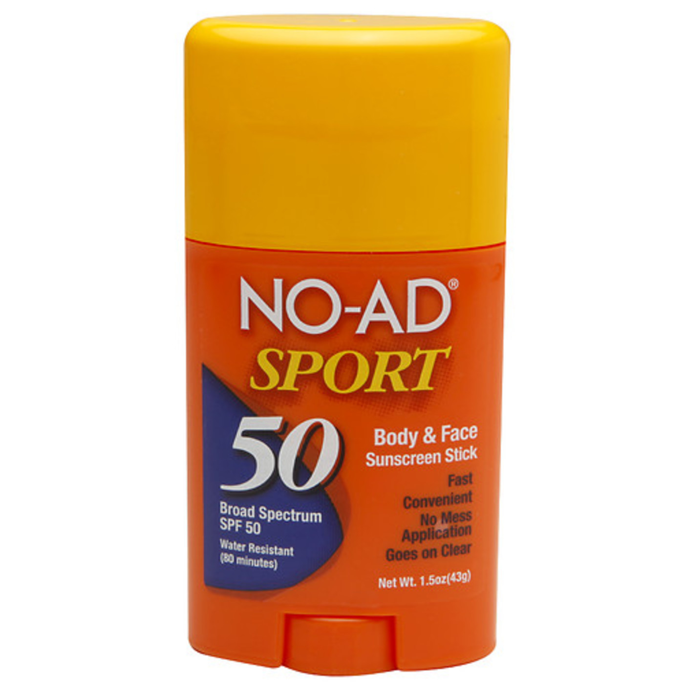 br> NO-AD Suncare Spout Sunscreen Stick SPF 50 goes on clear and is water resistant fou up to 80 minutes.