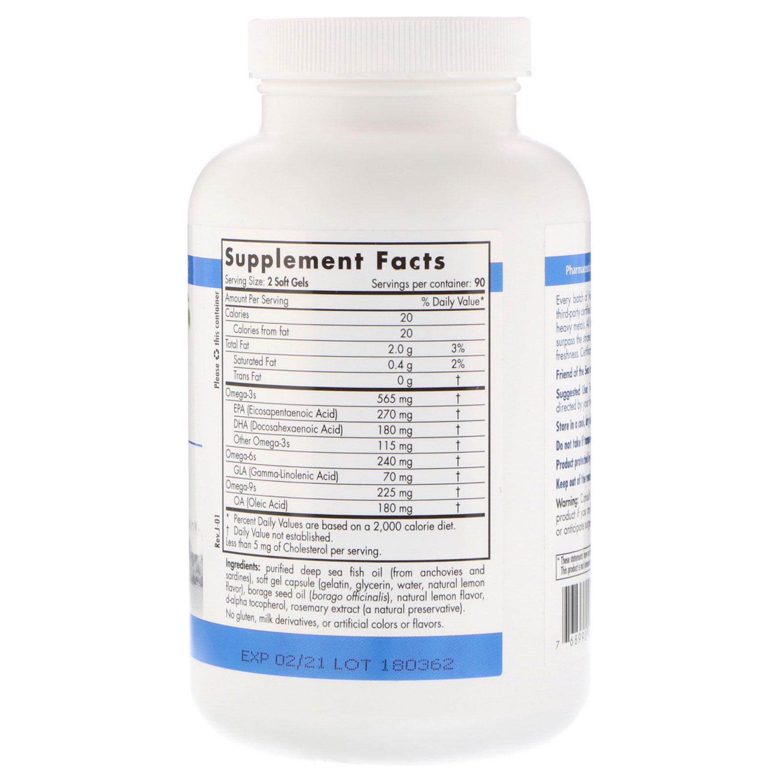 Every batch of Nordic Naturals fish oils is tested by a third-party certified lab for environmental toxins, including heavy metals. All fish oils are in the triglyceride form and surpass the strictest international standards for purity and freshness. Friend of the Sea certified.