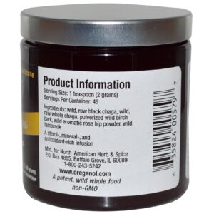 | Ingredientes: Chaga preta selvagem, crua, chaga inteira, crua, casca de vidoeiro selvagem pulverizada, pó de rosa rosa aromático selvagem, tamarack selvagem. |