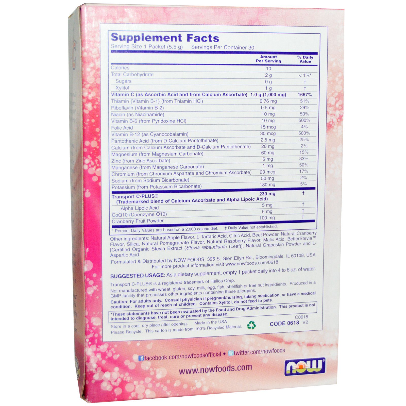 Now Foods, Effer-C, Mirtilo e Romã, 30 Pacotes, 5,5g Cada