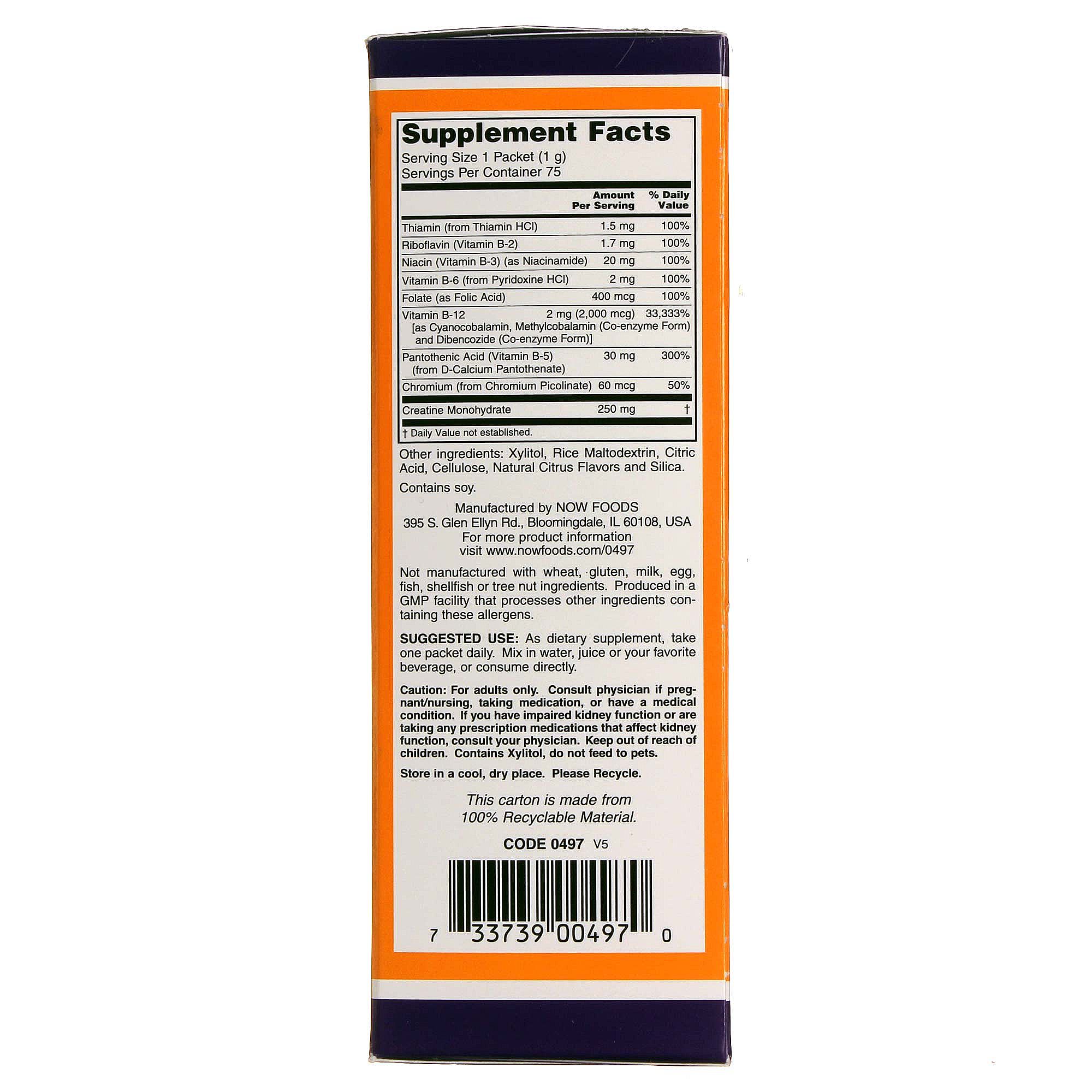 Now Foods Instantâneo de energia B-12 75 pacotes