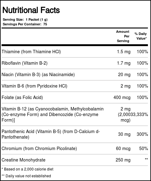 Mixing just one packet of Instant Energy B-12 in your favorite drink provides your body with 2 g of high-quality and fast-acting vitamin B12.