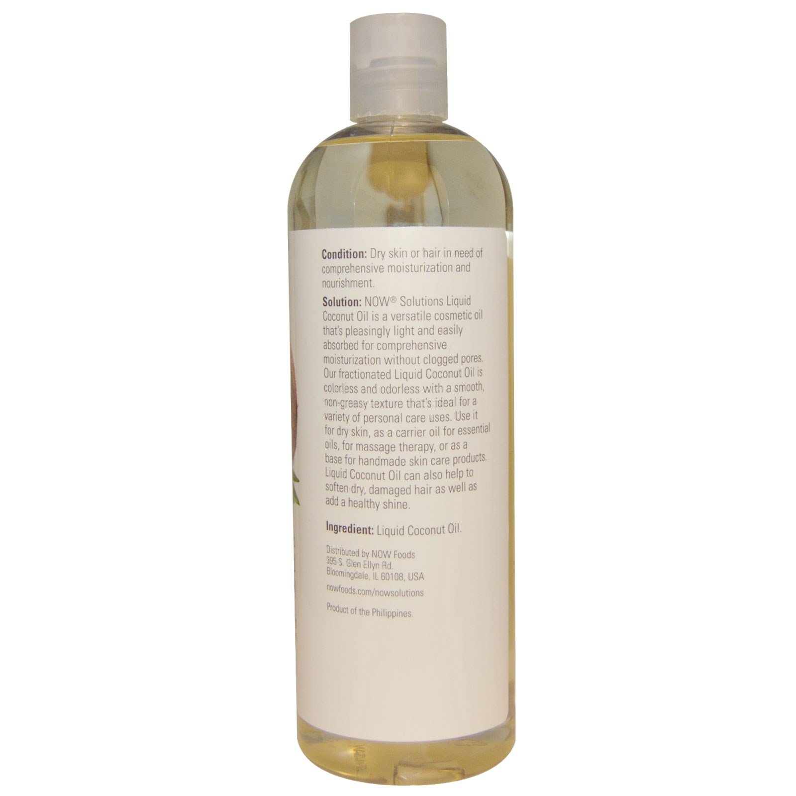 O Óleo de Coco Líquido da NOW Solutions é um óleo cosmético versátil, agradável e leve e facilmente absorvido para uma hidratação completa sem poros entupidos. Nosso Óleo de Coco Líquido fracionado é incolor e inodoro, com uma textura suave, não oleosa, ideal para uma variedade de usos de cuidados pessoais. Use-o para a pele seca, para diluir óleos essenciais, para massagem terapêutica, ou como uma base para produtos de cuidados da pele artesanais. O Óleo de Coco Líquido também pode ajudar a amaciar cabelos secos e danificados, bem como adicionar um brilho saudável.