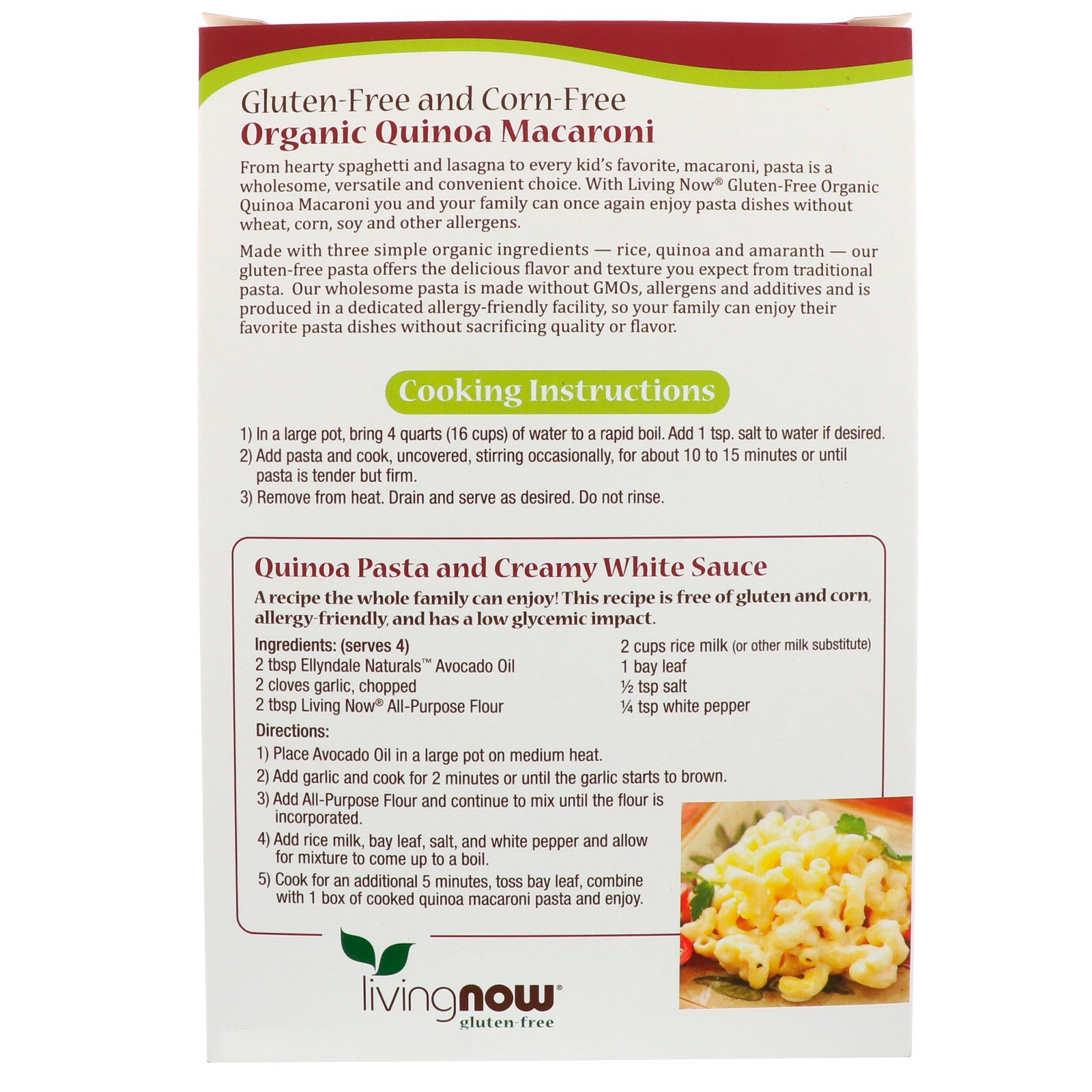 From hearty spaghetti and lasagna to every kid’s favorite macaroni, pasta is a wholesome versatile and convenient choice. With Living Now Gluten-Free Organic Quinoa Macaroni and you and your family can once again enjoy pasta dishes without wheat, corn, soy and other allergens.
