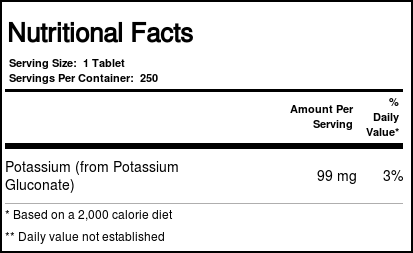 Now Foods Potássio Gluconato 99 mg 250 Tabletes