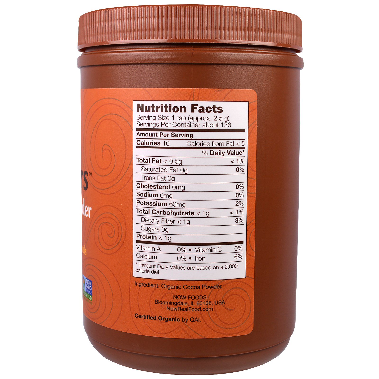1 colher de chá de Pó de cacau orgânico NOW Real Food