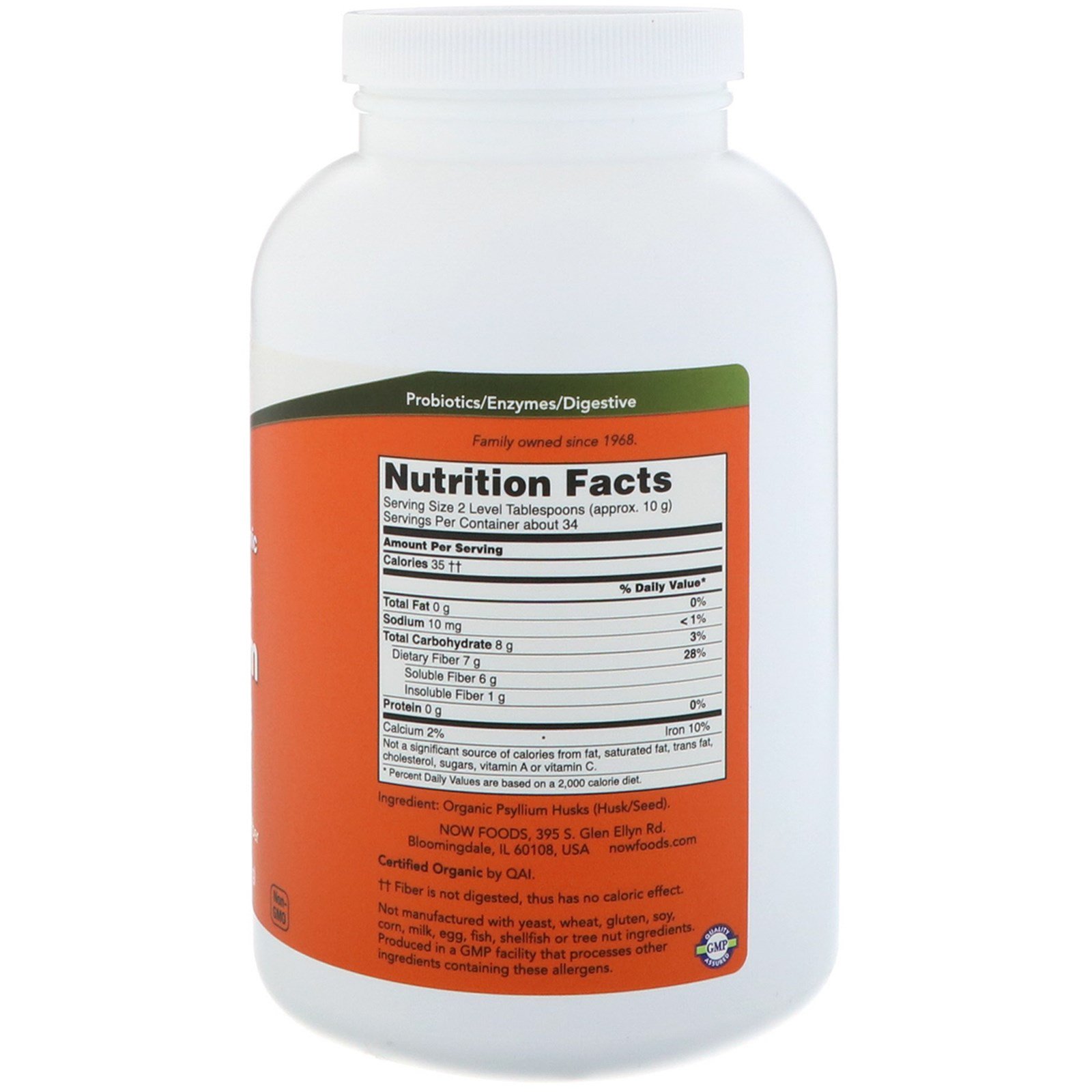 Now Foods, Salgadinhos de Psyllium inteiros orgânicos certificados, 12 oz (340 g)