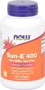 NOW Sun-E 400 is a soy-free, natural Vitamin E derived for Identity Preserved (IP), Non-GMO sunflower seed oil. Vitamin E is a major antioxidant and the body’s primary defense against lipid peroxidation. It is particularly important for the protection against cellular free radical/oxidative damage. Cell protection against oxidative damage is achievable with supplemental intakes higher than what is normally consumed in the average diet.