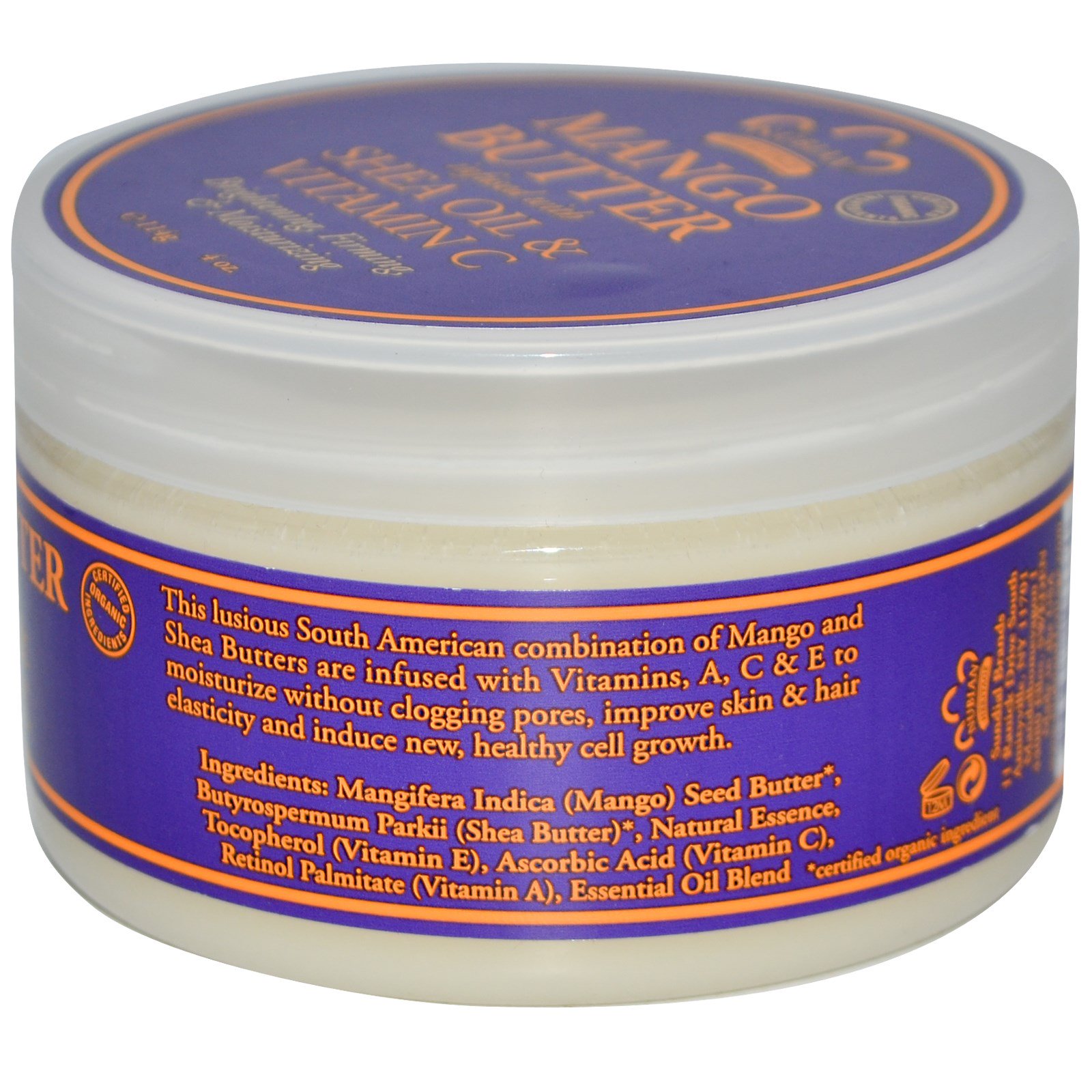 Esta luxuosa combinação sul-americana de Manteigas de Manga e Karité é infundida com vitaminas A e E para hidratar sem entupir os poros, melhora a elasticidade da pele e cabelos, e promove crescimento de células novas e saudáveis.