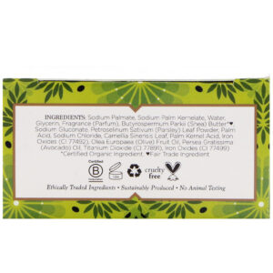 Palmada de sódio, kernelato de palma de sódio, água, glicerina, fragrância (parfum), butyrospermum parkii (shea) manteiga * ♥, gluconato de sódio, petroselinum sativum (salsa) em pó de folha, ácido de palma, cloreto de sódio, folha de camélia sinensis, ácido de palmeira, óxidos de ferro (ci 77492), olea europaea (azeitona) óleo de fruta, óleo de persea gratissima (abacate), dióxido de titânio (ci 77891), óxidos de ferro (ci 77499).