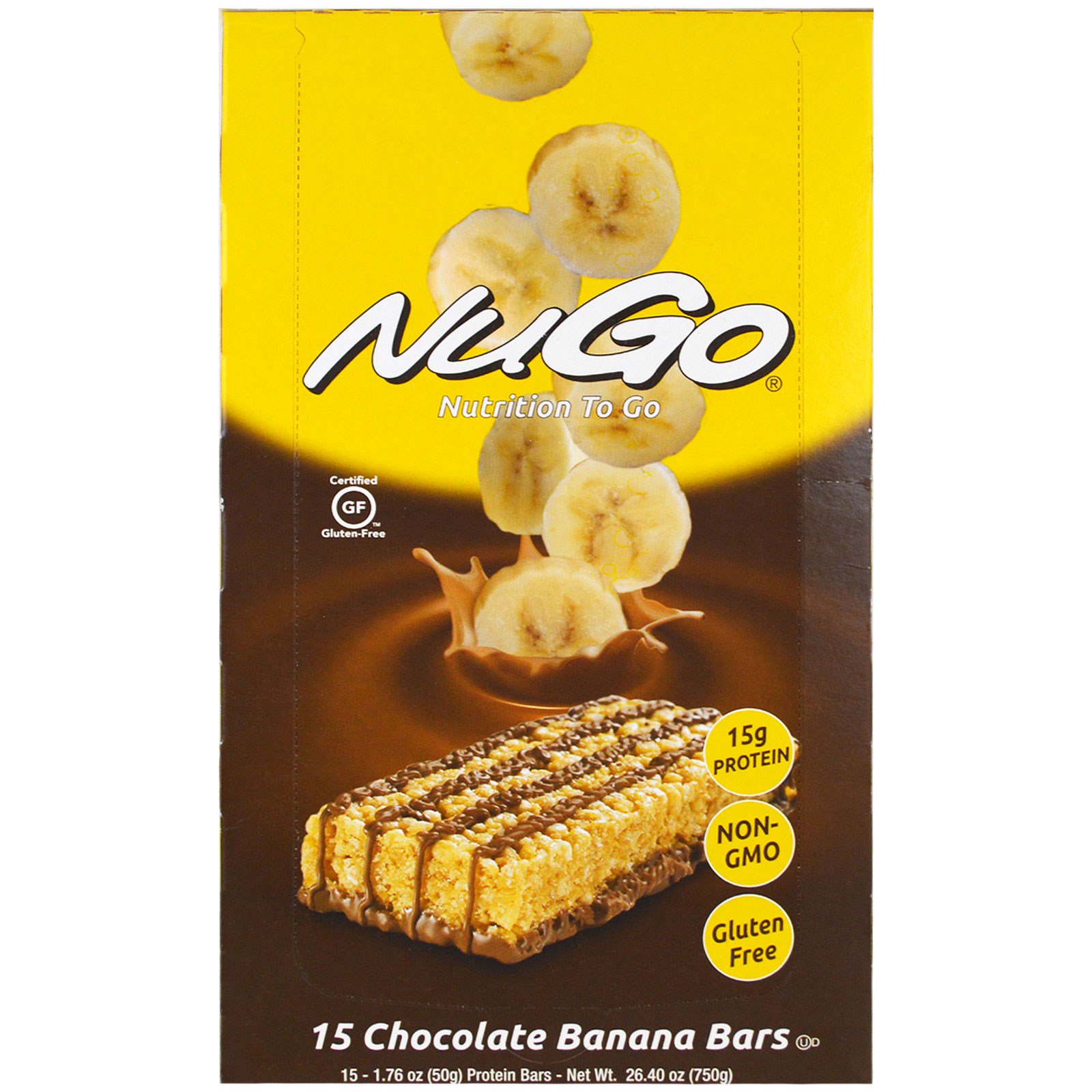NuGo Nutrition, Nutrição em Movimento, Barras de Chocolate e Banana, 15 Barras de Proteína, 50 g cada