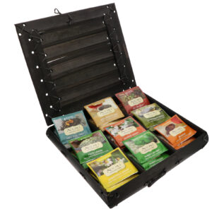 45 organic tea bags in a handcrafted bamboo box. 5 each of 9 classic teas representing iconic tastes representing iconic tastes from around the world.
