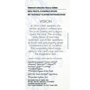 A citrus splash awakens the senses as lemon verbena gets the juices flowing and guayusa opens the mind. The woodsy, piney flavor of rosemary illuminates a plum-like sweetness as bright mint and peppery ginger complement a hint of cinnamon. This invigorating blend brings clarity to the mind’s eye and sets the imagination free.