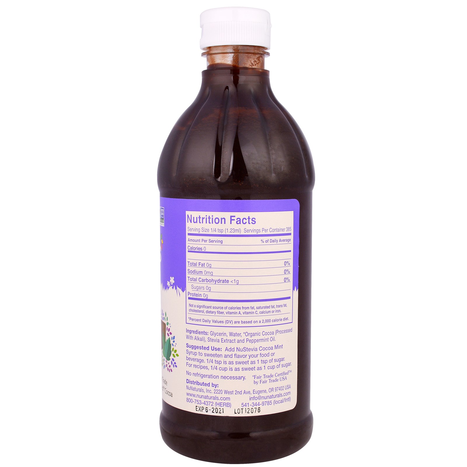 Add NuStevia Cocoa Mint Syrup to sweetener and flavor your food or beverage. 1/4 tsp is as sweet as 1 tsp of sugar. For recipes, 1/4 cup is a sweet as 1 cup of sugar.