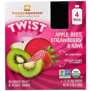 Nurture Inc. (Happy Baby), Happy Squeeze, Superalimento Orgânico, Twist, Maçã Orgânica, Beterraba, Morango e Kiwi, 4 bolsas, 90 g cada