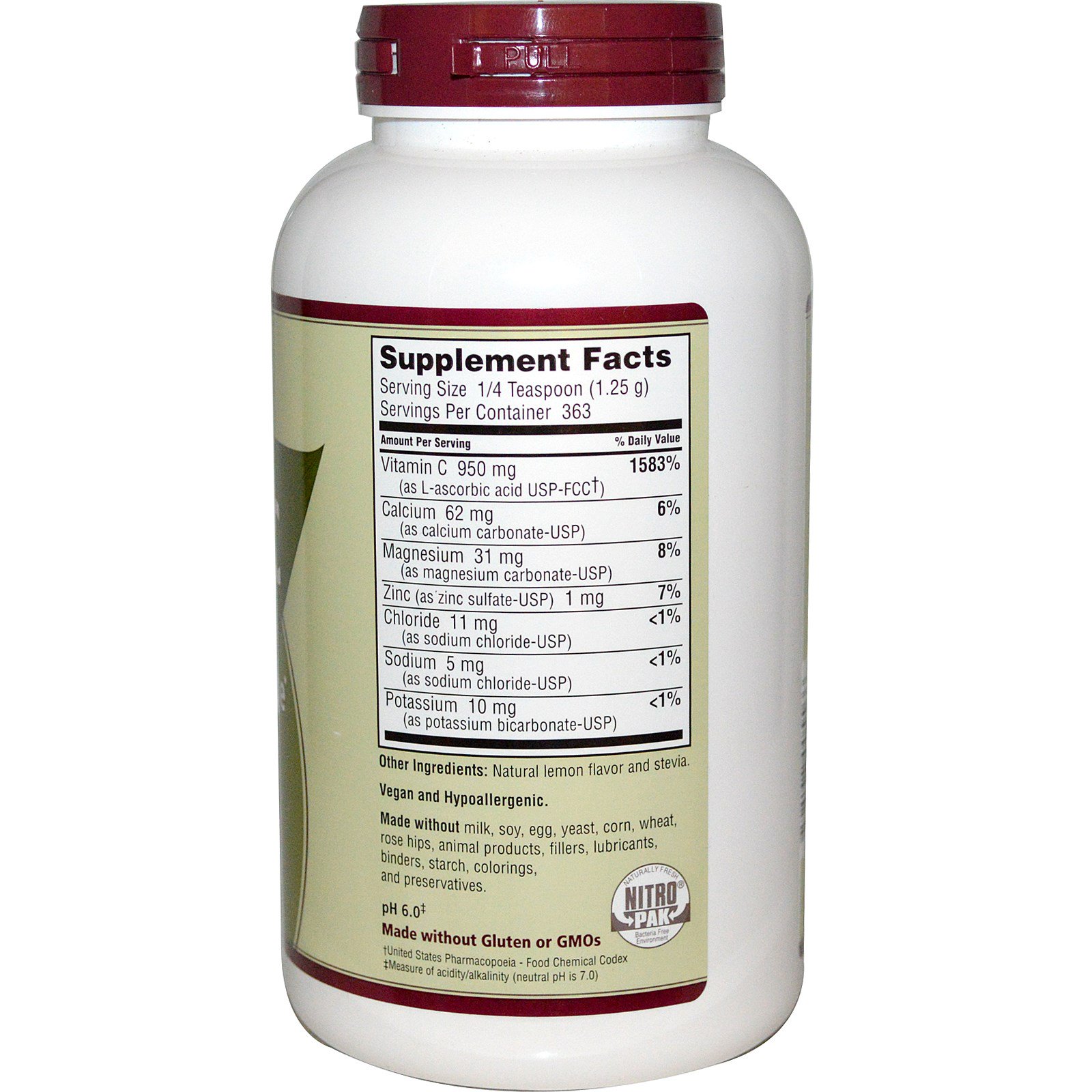 - NutriBiotic, Hypo-Aller C, Isolado, Pó Cristalino Efervescente, 454 g (16 oz)