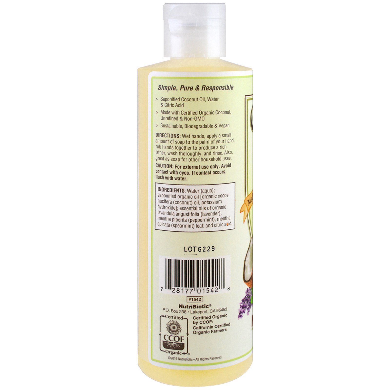 NutriBiotic, Sabão de óleo de coco puro, Lavanda e menta, 8 fl oz (236 ml)