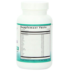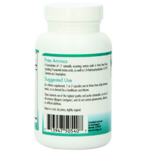 ormulation of 17 naturally occurring amino acids in their free forms, including 9 essential amino acids, as well as 5-L-Hydroxytryptophan (5-HTP). Contains no L-tryptophan. 5-HTP is in the same metabolic pathway as L-tryptophan, and is the immediate precursor to serotonin and melatonin. This formulation is appropriate for food-sensitive individuals.