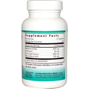 TriBiotics contém sulfato de berberina, artemisinina, extrato de sementes cítricas (de pomelo), e nozes negras. Berberina é o constituinte ativo do hidrastis. Artemisinina, ou qinghaosu, é o constituinte ativo da artemísia (Artemisia annua).