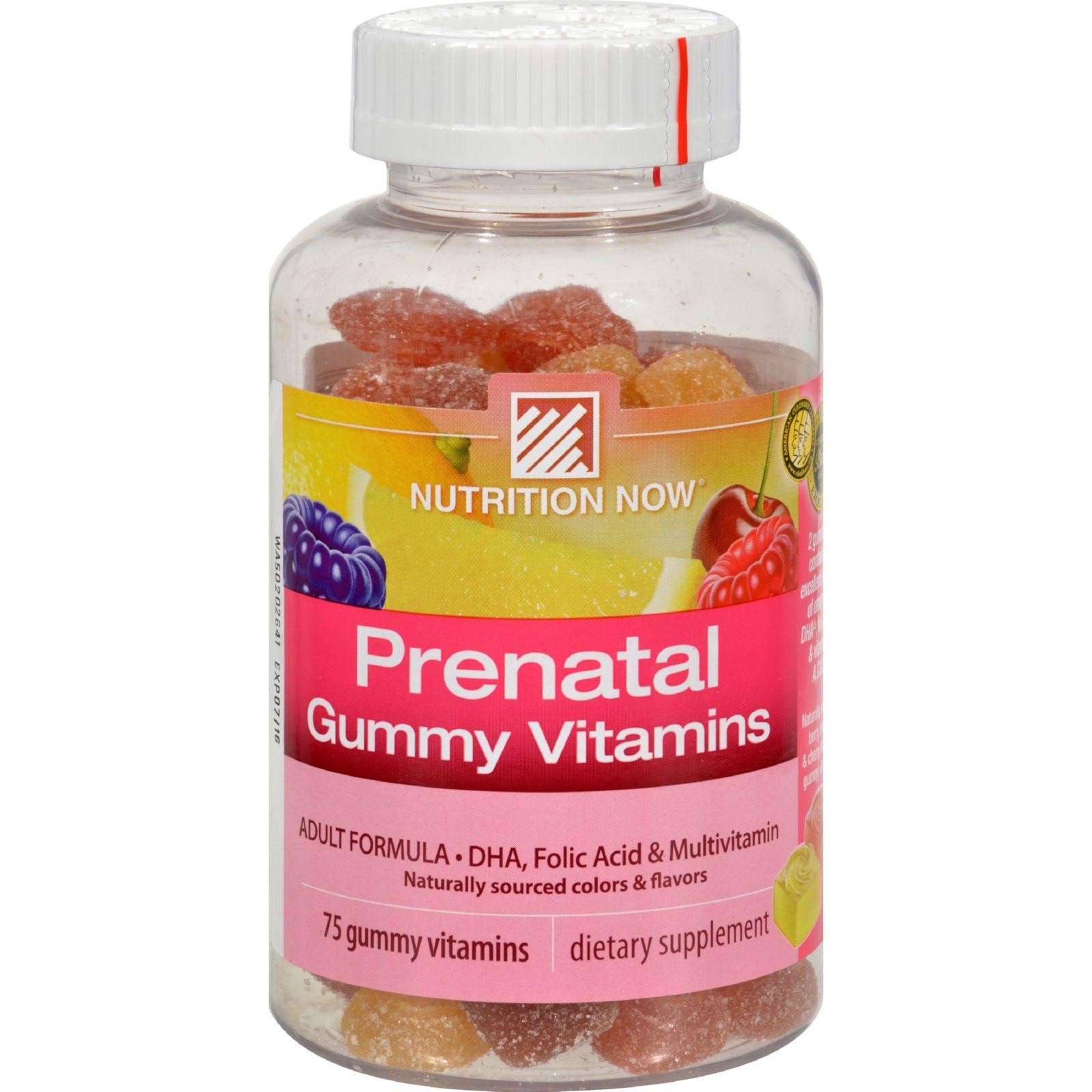 Nutrition Now Prenatal Gummy Vitamins Description: DHA, Folic Acid and Multivitamins Nutrition Now PreNatal Gummy Vitamins are easy on the stomach and provide expectant mothers a multivitamin formula with an excellent source of folic acid and DHA. Made with natural colors and flavors, theyre a great-tasting alternative to large, hard-to-swallow tablets. Nutrition Now PreNatal contain no iron, so no iron constipation problems. Free Of Wheat (gluten), milk, eggs, peanuts, tree nuts or shellfish and iron Disclaimer These statements have not been evaluated by the FDA. These products are not intended to diagnose, treat, cure, or prevent any disease.