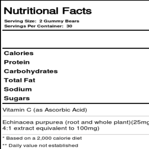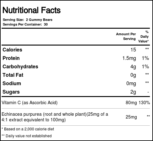 Notas: All Natural – Great Tasting – Gummy Bears. May be given to children age two and older.