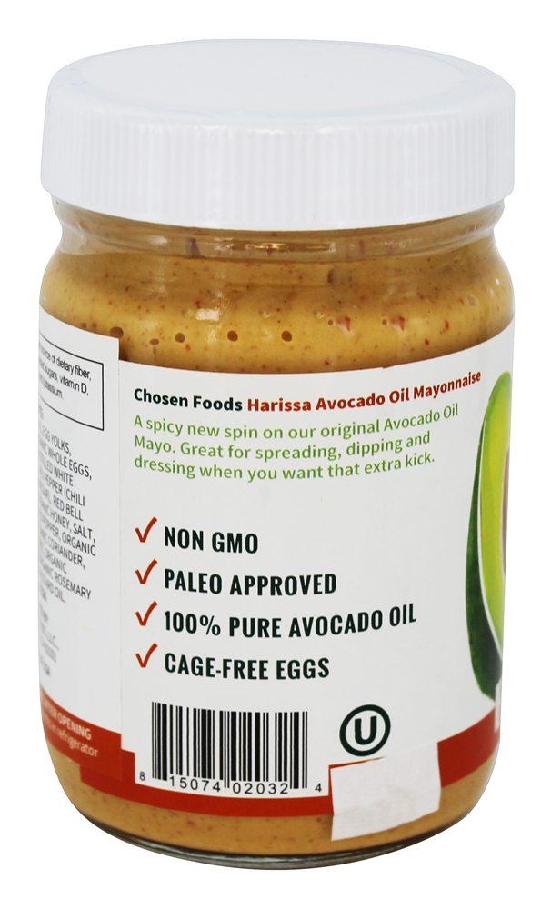 Adicionar Chosen Foods Abacate óleo Mayo Harissa para sua sanduíches, tacos, curativos e molhos para transformar acima o calor e ardente sabor. Harissa acrescenta um picante chutar para seu tradicional Abacate óleo Mayo. Harissa Abacate óleo Mayo é Paleo amigável, assim você lata mergulhar ele, espalhar ele, e AMOR ele – sem qualquer culpa!