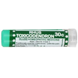 Rhus Toxicodendron 30C from Ollois comes in the foumat of small white rounded pellets that have a sweet flavou and are about 4mm in diameter.