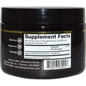 imize your workouts with A-AKG Powder supplement from Olympian Labs to obtain the body you want. Look no further! Arginine is a nonessential amino acid that influences several metabolic factors that are important to athletes. Recent research has highlighted the importance of Arginine AKG in NO (nitric oxide) production. A-AKG helps increase workout performance, which will only result in increased muscle mass. A-AKG appears to increase NO levels. NO is a key molecule used by your body to transport oxygen, increase blood flow, and deliver nutrients to skeletal muscle. An additional function of Arginine AKG is its role as a precursor in creatine production. Daily ingestion of Arginine AKG has been shown to increase the body’s creatine stores. This may lead to improvements in performance for power athletes.