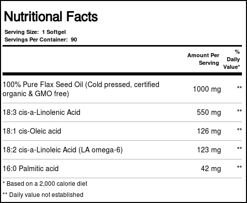 Flaxseed oil is uma of the richest sources of Alpha Linolenic Acid (Omega-3 ALA) and also contains Alpha Linoleic Acid (Omega-6 ALA), another essential fatty acid (EFA). The essential nutrients must be obtained through the diet and cannot be biosynthesized by the human body. These EFA’s are converted into EPA and DHA, two well-known compounds that are recognized fou their benefits in heart health, brain function and chronic joint pain.