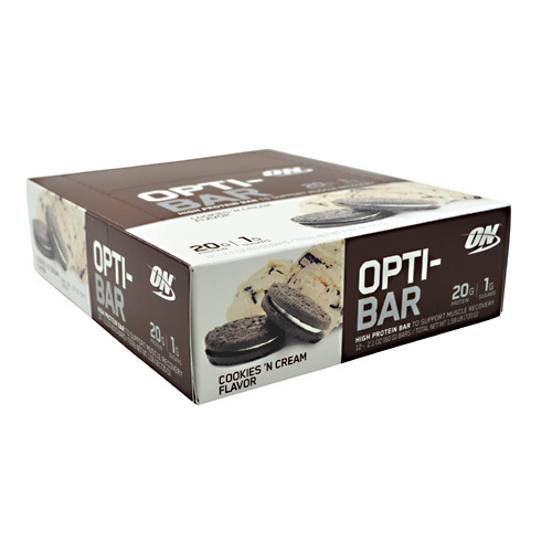 timum Nutrition Opti-Bar is high in protein and carbohydrates.