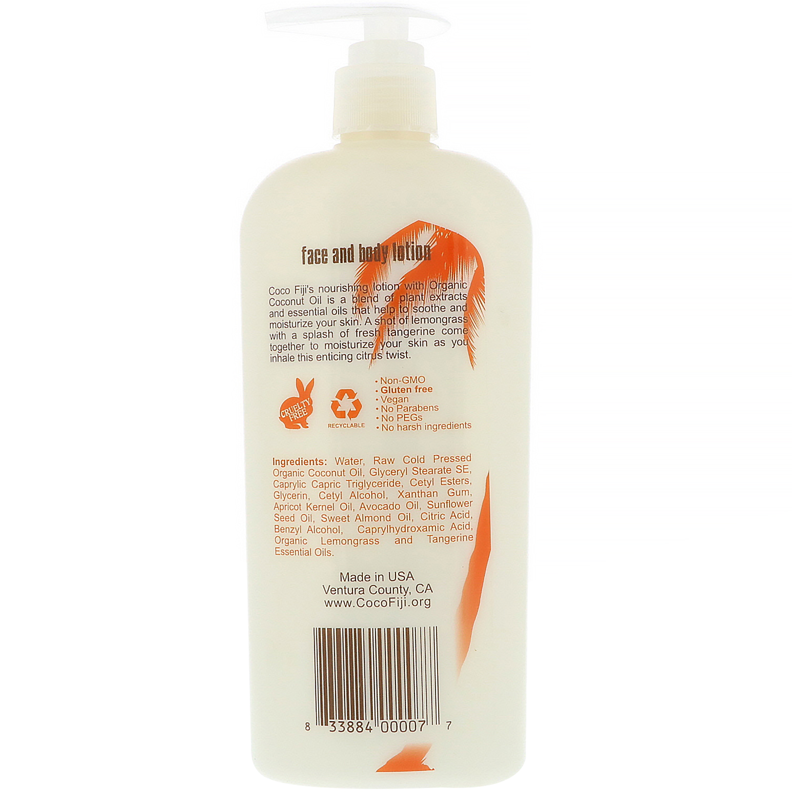 Organic Fiji, Face & Body Lotion, Infused with Raw Coconut Oil, Lemongrass Tangerine, 12 oz (354 ml)