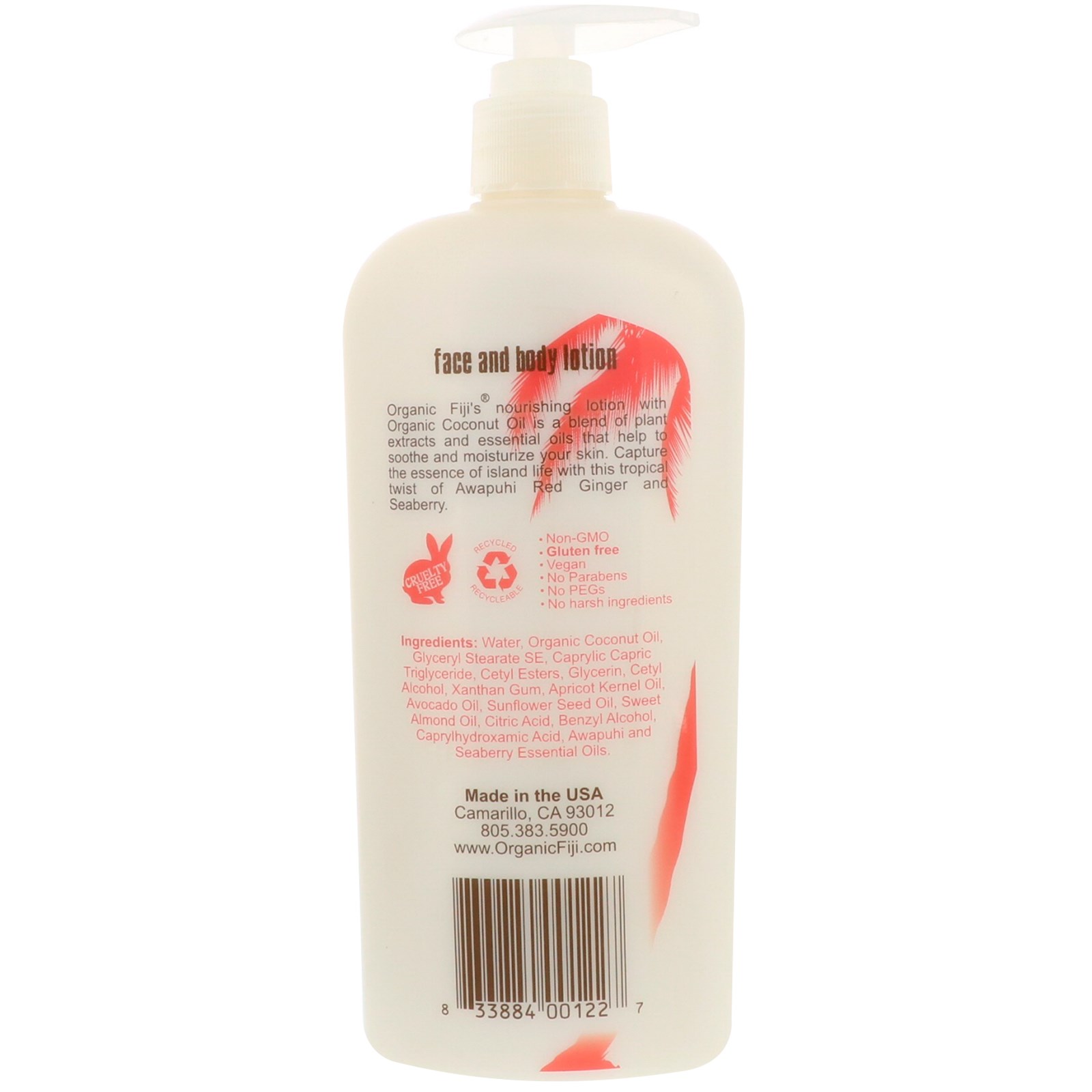 - Organic Fiji, Face and Body Lotion, Infused with Raw Coconut Oil, Tuberose, 12 oz (354 ml)