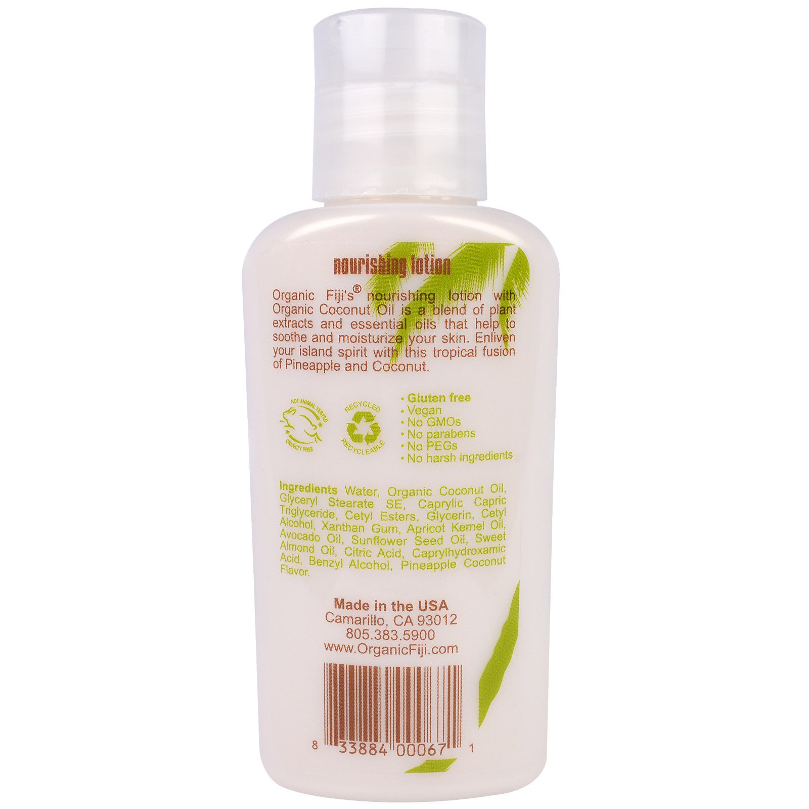 Organic Fiji’s nourishing lotion with Organic Coconut Oil is a blend of plant extracts and essential oils that help to soothe and moisturize your skin. Enliven your island spirit with this tropical fusion of Pineapple and Coconut.