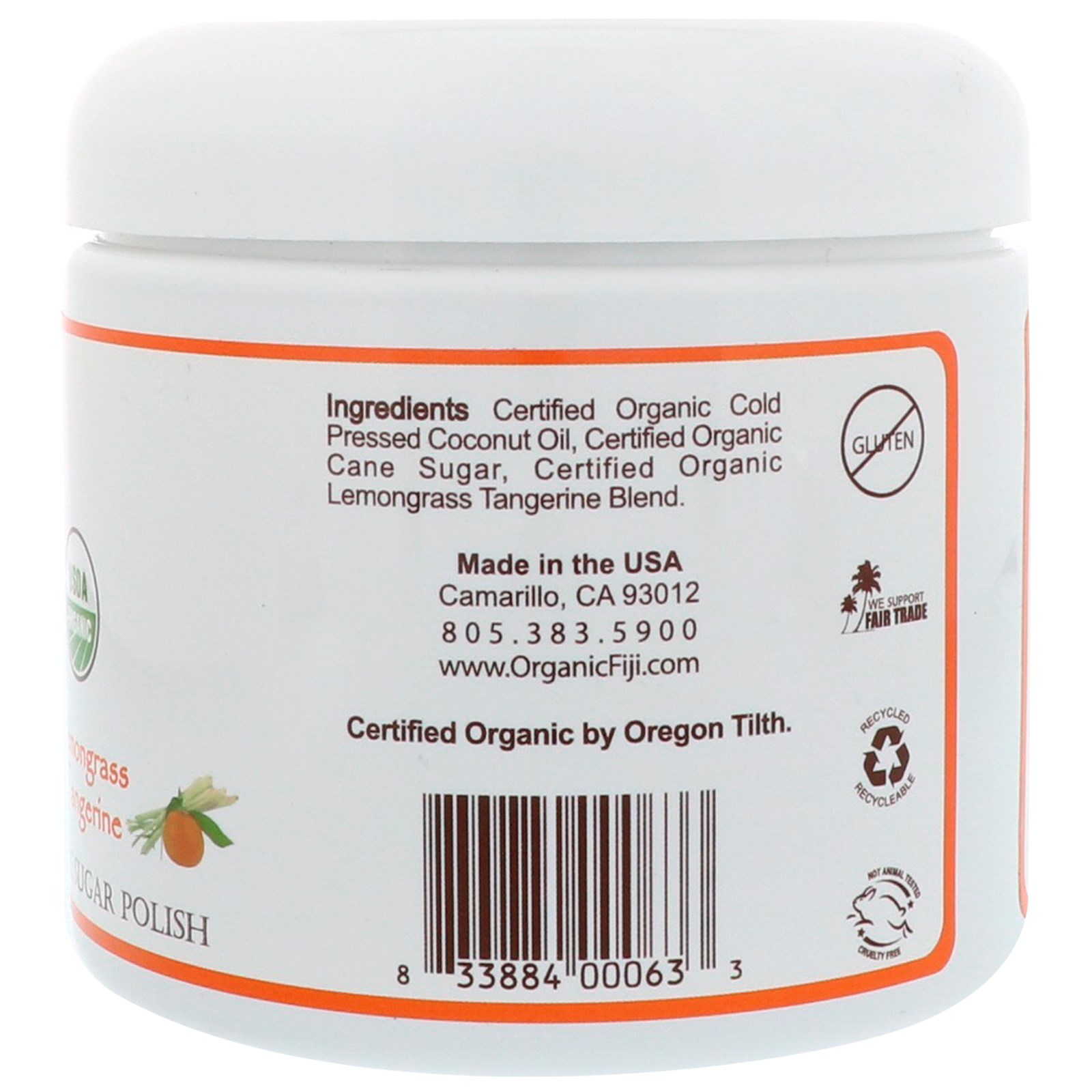 Organic Fiji, Polimento de açúcar orgânico, Capim-limão Tangerina, 20 oz (566 g)